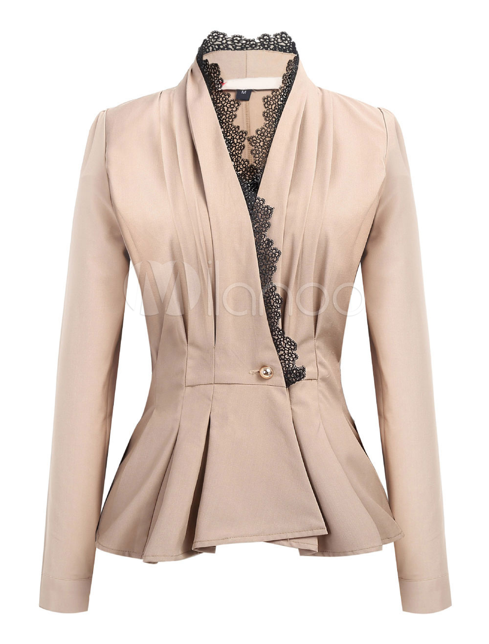 Women Peplum Blazer Lace Patch Long Sleeve Button Blazer Jacket Milanoo Com