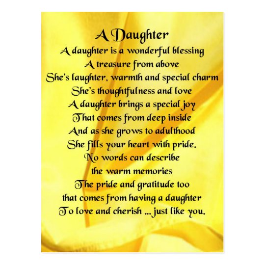 Tochter Gedicht Gelbe Seide Postkarte Zazzle De