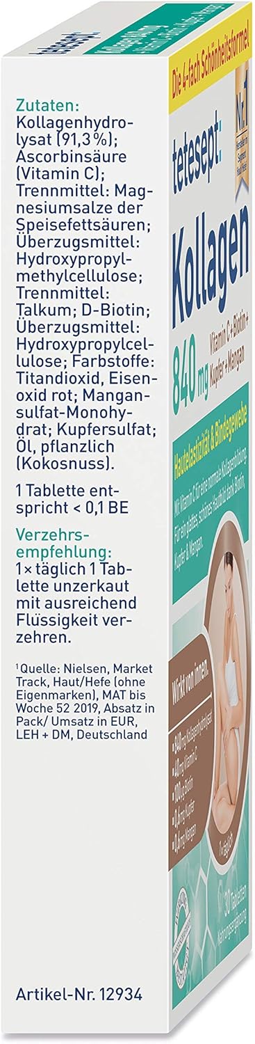 Tetesept Collagen 840 Mg Dietary Supplement With Collagen Vitamin C Biotin Copper Manganese For Smooth Beautiful Skin Complexion Thanks To Biotin Copper And Manganese 1 X 30 Tablets Amazon De Drogerie Korperpflege