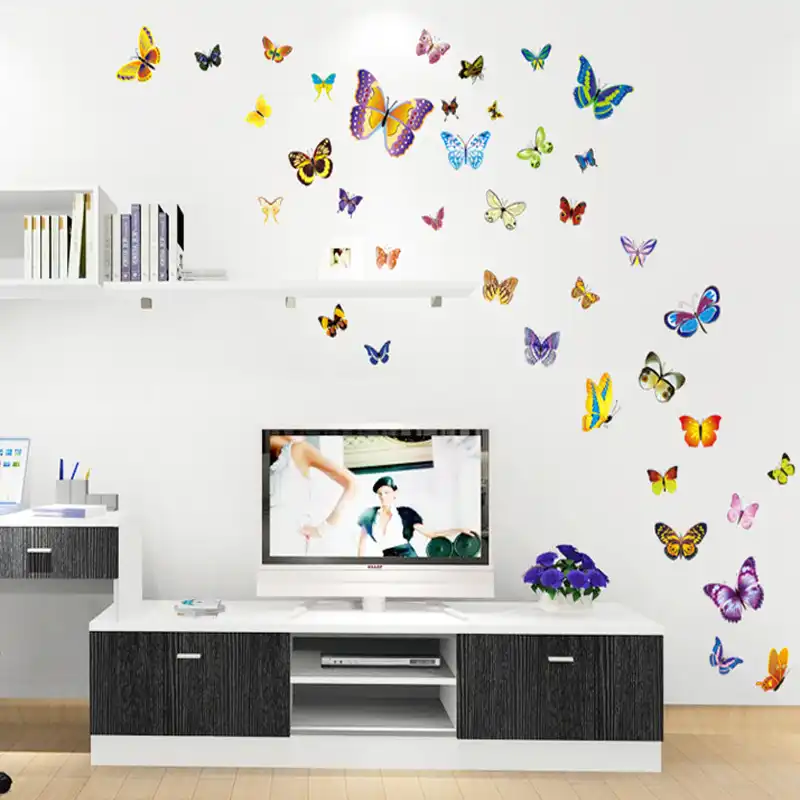 Bunte Schmetterling Wandaufkleber Fur Wohnzimmer Schlafzimmer Tv Hintergrund Wand Kinder Raum Mode Schmuck Aufkleber Wandbild Butterfly Wall Stickers Wall Stickerstickers For Aliexpress