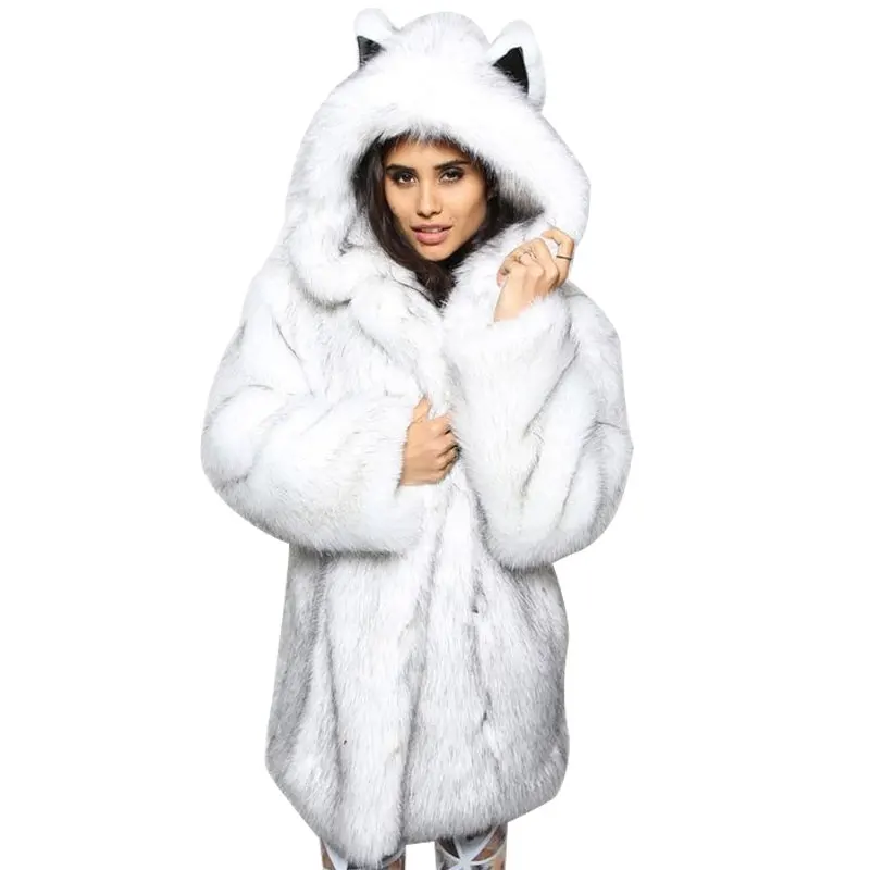 Damen Kunstpelz Mantel Rovinvi Frauen Verdicken Pelzmantel Elegant Flaumig Warm Faux Fur Kunstfell Jacke Lang Einfarbig Pluschmantel Wintermantel Felljacke Coat Outwear Kapuzenpullover Winterjacke Jacken Mantel Westen Umstandskleidung