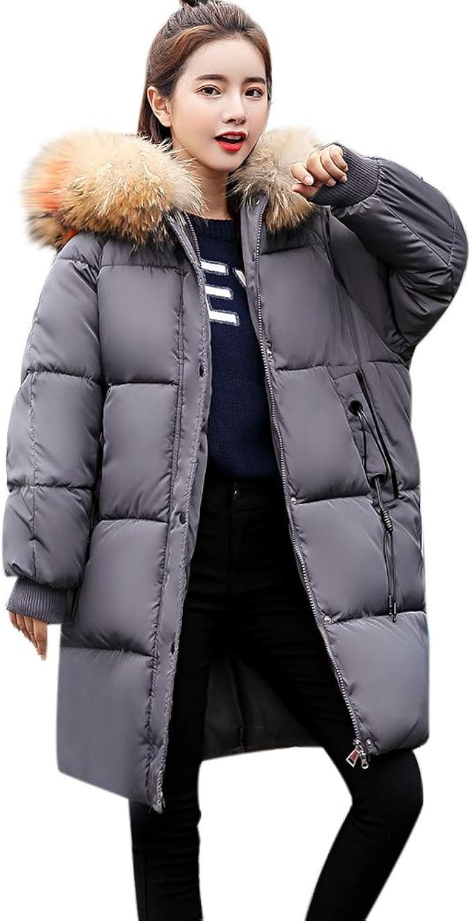 Warme Damen Winter Jacke Parka Lang Mantel Winterjacke Fell Kragen Kapuze Kaufen