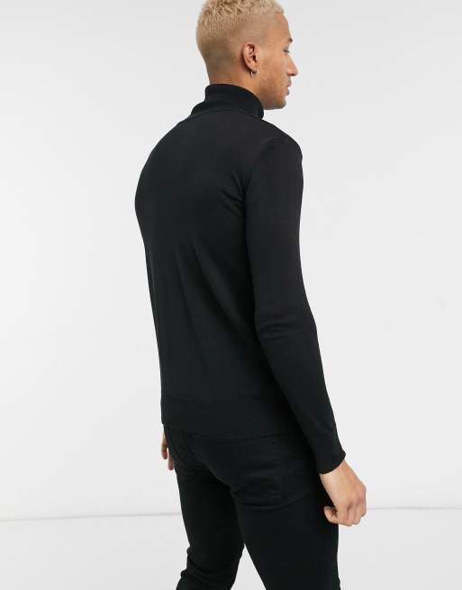 Asos Design Schwarzer Rollkragenpullover Aus Merinowolle Asos