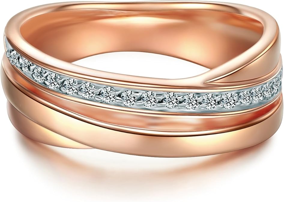 Tresor 1934 Damen Wickelring Sterling Silber Rosevergoldet Zirkonia Weiss Im Brillantschliff Ehering Trauring Ring Zirkonia Rosegold