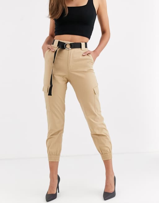 Project X Paris Damen Cargohose Pockets And Strap Detail In Beige Cargohose Paris Beintasche
