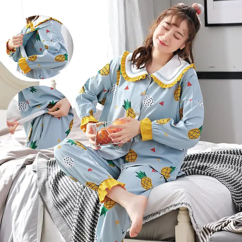 Baumwolle Mutterschaft Langarm Pyjamas Frauen Pflege Nachtwasche Schwangere Stillen Pyjamas Mutterschaft Nachthemd Pflege Pyjamas Schlafen Wohnen Aliexpress