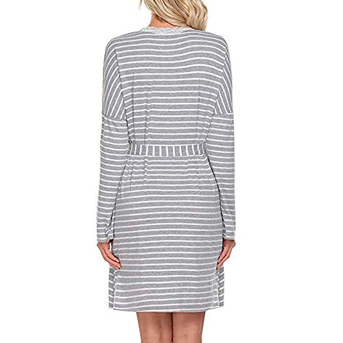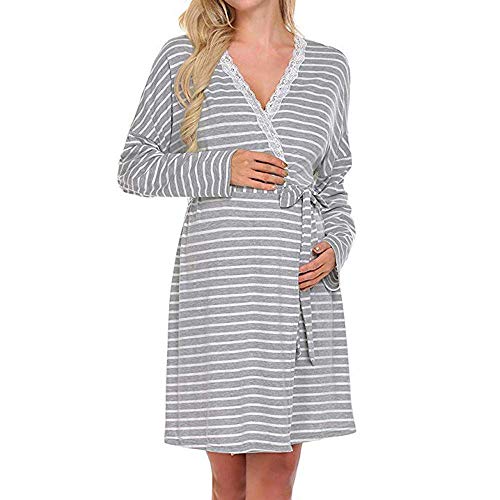 Rosennie Damen Umstandskleidung Kleider Stillzeit Langarm Kleidung Stripes Mutterschaft Stillen Kleid Langarm Taste Pflege Nightie Gerafften Stillkleid Skaterkleid Schwangere Nachthemd Bekleidung B07g55dh65