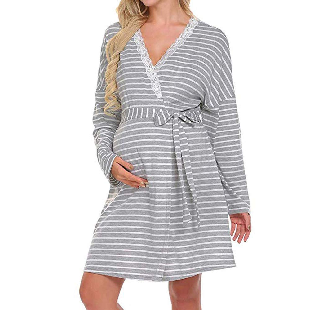 Gaga City Damen Umstandskleid Umstandsnachthemd Stillnachthemd Langarm Nachthemden Fur Schwangere Und Stillzeit Nachthemd Stillen Nachtwasche Streifen Amazon De Bekleidung