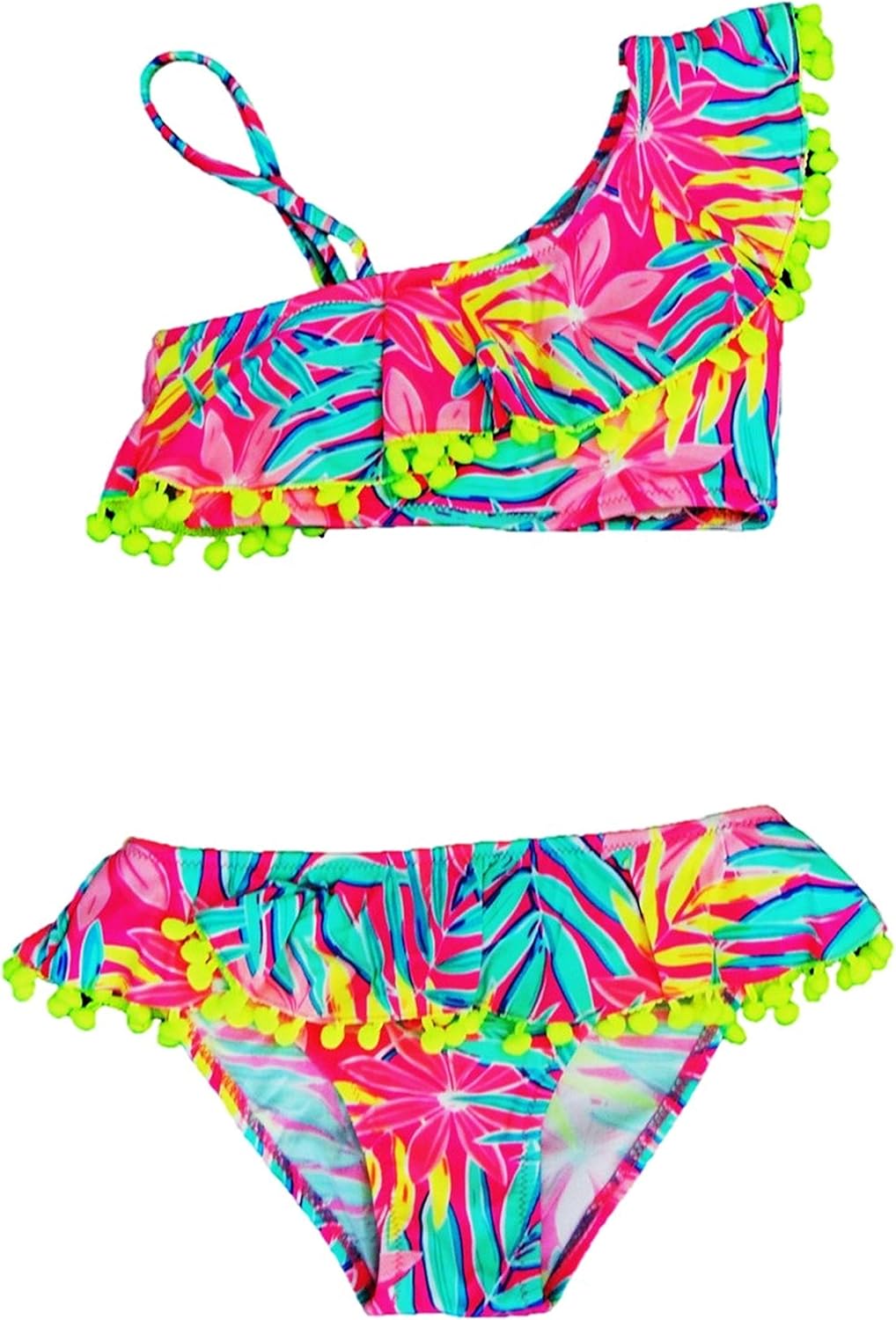 Bade Surfbekleidung Vanessashop Schoner Madchen Bikini In One Shoulder Optik In Bunten Farben Mit Volant Und Vielen Tollen Bommels Am Rand In Den Grossen 134 164 Sport Freizeit Fbotion Com Br