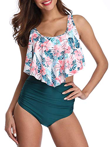 Damen Neckholder Bikini Volant Bademode Mit Badehose Bikini Set Badeanzug Swimsuit Grun Xl Feature Niedliches Mus Bademode Hohe Taille Badeanzug Blumenbikini