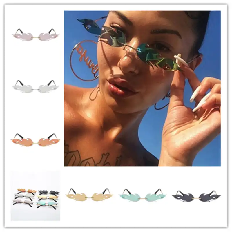 New 19 Mode Feuer Flamme Sonnenbrille Frauen Randlose Welle Sonnenbrille Fur Manner Brillen Luxus Trendi Sonnenbrillen Frauen Sonnenbrille Sonnenbrille Damen