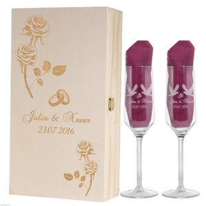 2 Sektglaser Set Holzkiste Mit Personalisiert Gravur F Hochzeit Geschenk Tauben
