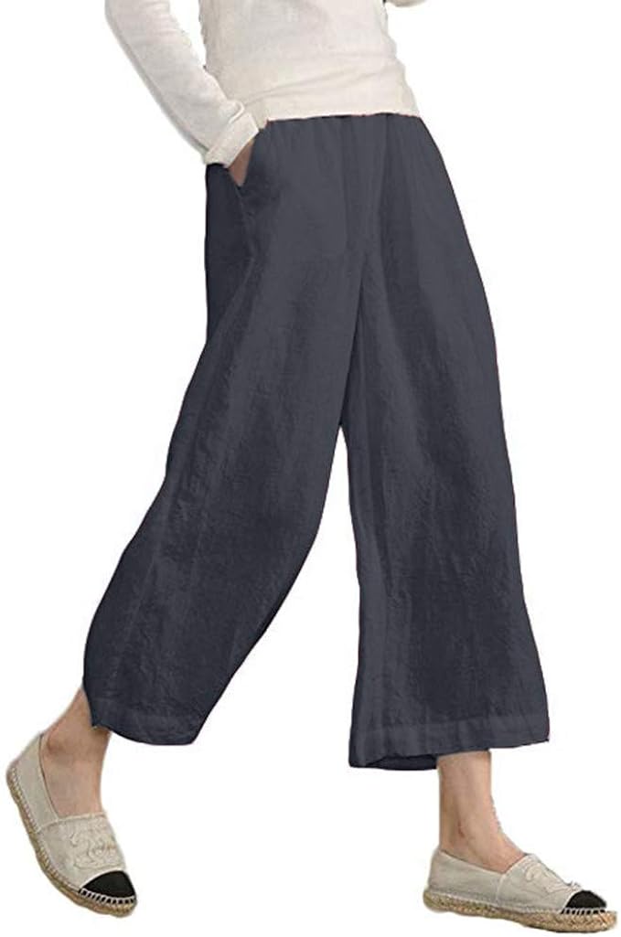 2x Frauen Vintage Baumwolle Leinen Solide Hohe Taille Weite Hosen Damen Laes4i6 Eur 15 48 Picclick De