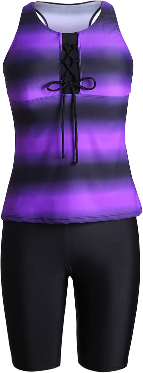 Fangjin Damen Bauchweg Tankini Sets Zweiteiler Gestreift Mollige Sport Badeanzug Bekleidung Damen