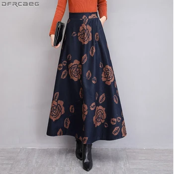 Retro Europa Stil Lange Rocke Fur Frauen Vintage Winter Samt Wolle Rock Plus Grosse Stretch Maxi Rock Hohe Taille A Line Faldas Leather Bag