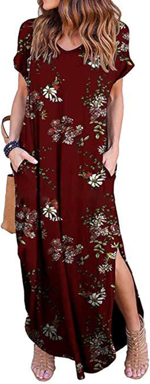 Longra Damen Sommerkleider Lang Maxi Rock Maxilang Kleid Tube Kleid Chiffon Kleider Mit Blumenmuster Schone Kleider Damen V Ausschnitt Elegant Abendkleider Boho Lange Beachkleid Strandkleid Wine Xl Amazon De Bekleidung