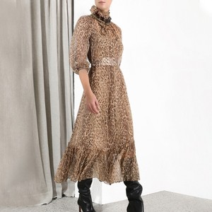 Crepe Kleid Dunkelbeige Leopardenmuster Ladies H M De