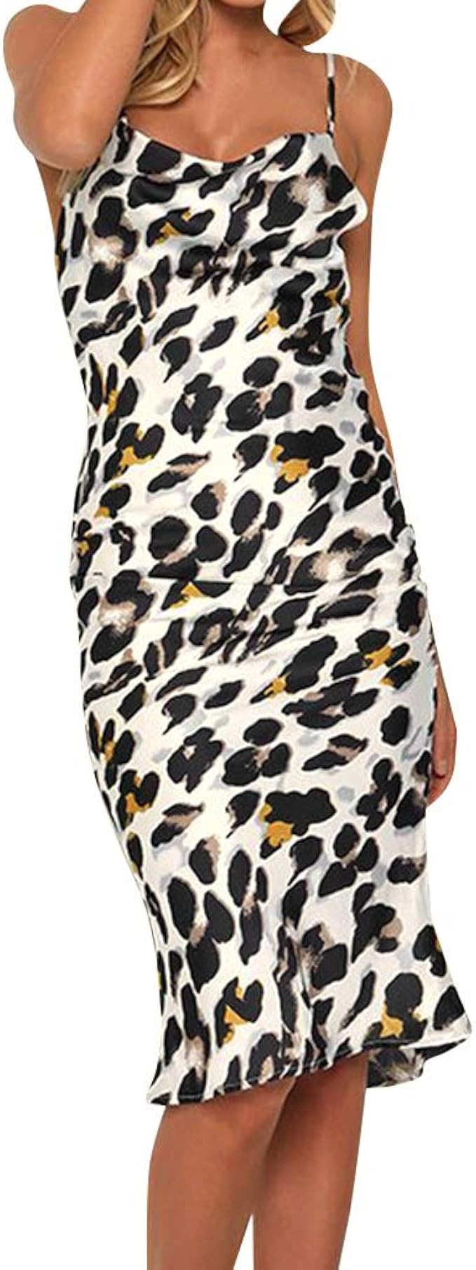 Odjoy Fan Kleider Damen Leopardenmuster Drucken Schlinge Kleid Armellos Abendkleider Party Kleid Leopard Print High Waist Lady Sexy Mini Dress Evening Party Dress Amazon De Bekleidung