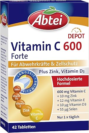 Abtei Vitamin C 600 Forte Hochdosiertes Nahrungserganzungsmittel Zur Unterstutzung Der Abwehrkrafte Und Des Zellschutzes Mit Zink Und Vitamin D3 1 X 42 Tabletten Amazon De Drogerie Korperpflege