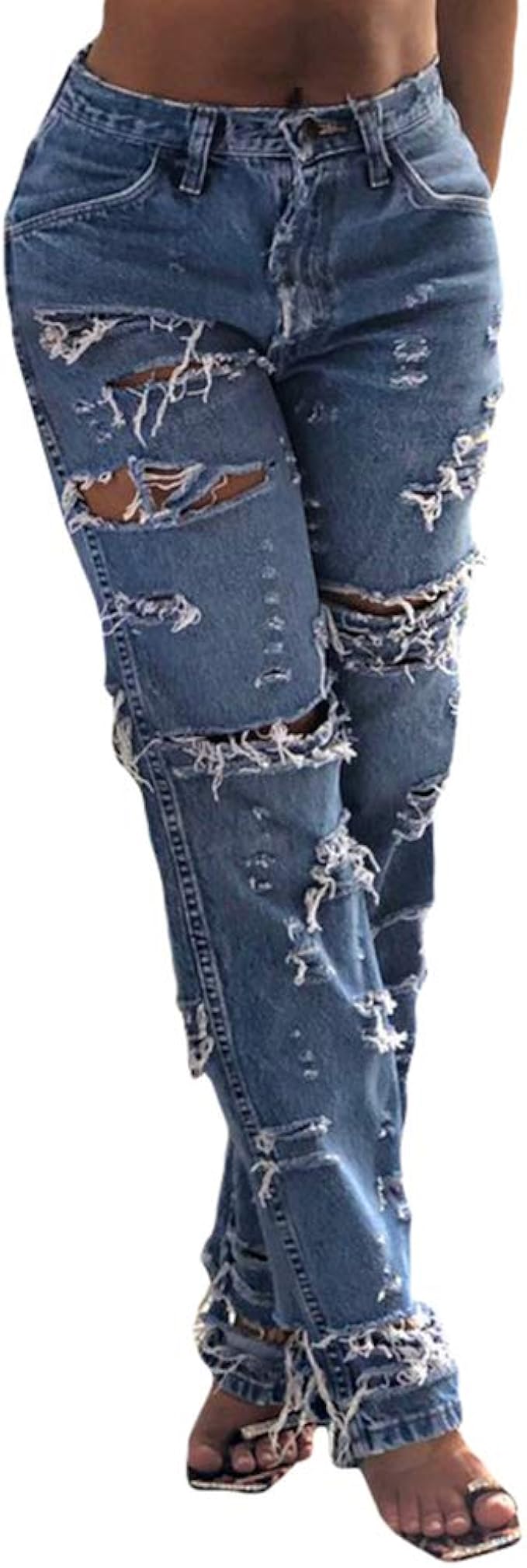 Vertvie Damen Destroy Jeans Zerrissen Lochern Jeanshosen Denim Pants High Waist Langhosen Skinny Strech Weite Beine Lange Huftjeans Rohrenjean Vertvie Amazon De Bekleidung