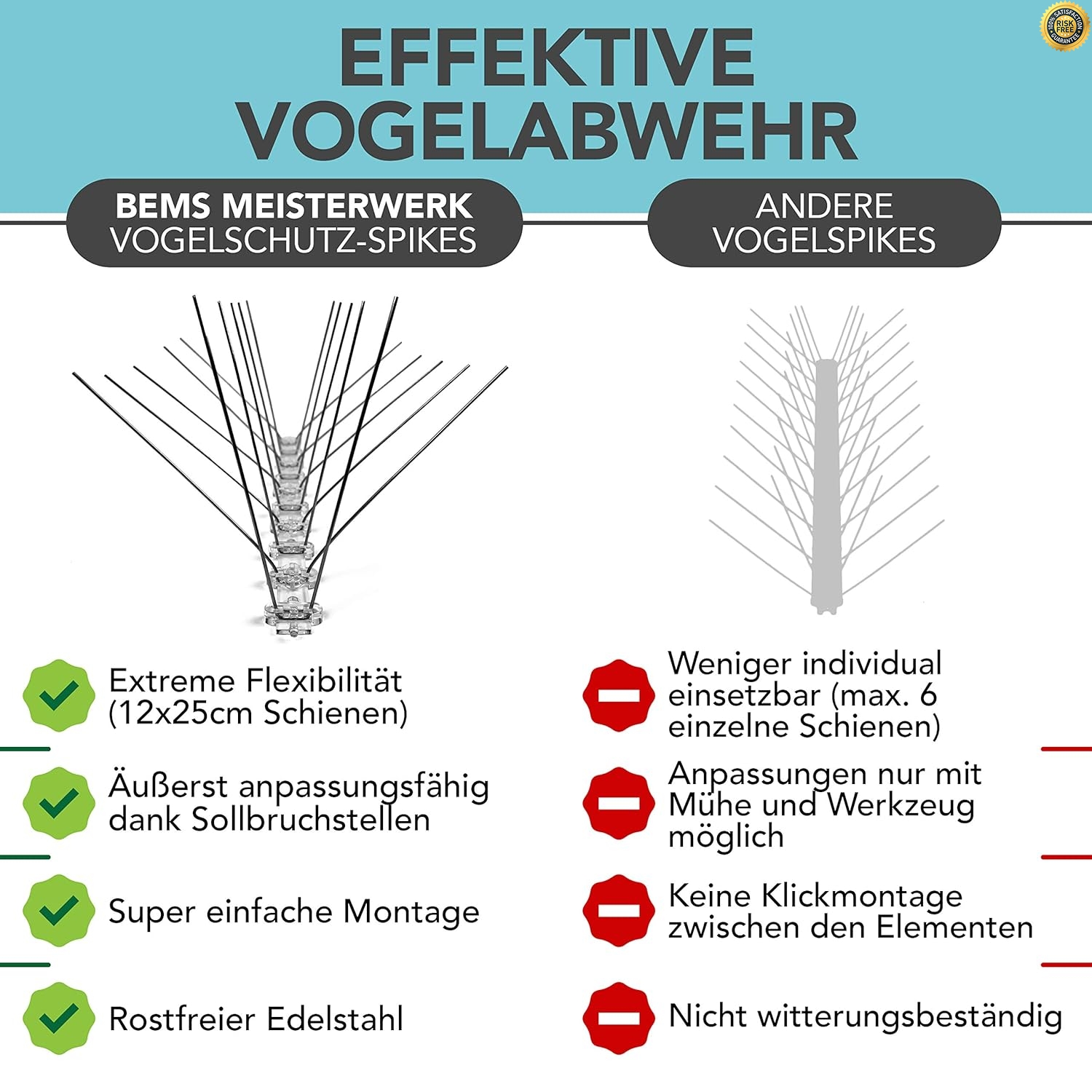 Dach Und Fenster Bems Meisterwerk Effektive Taubenabwehr Und Vogelabwehr Mit Vogelschutz Spikes Aus Edelstahl Fur Balkon 3m Taubenspikes Mit Sollbruchstellen Fur Einfache Montage Garten Gartenarbeit