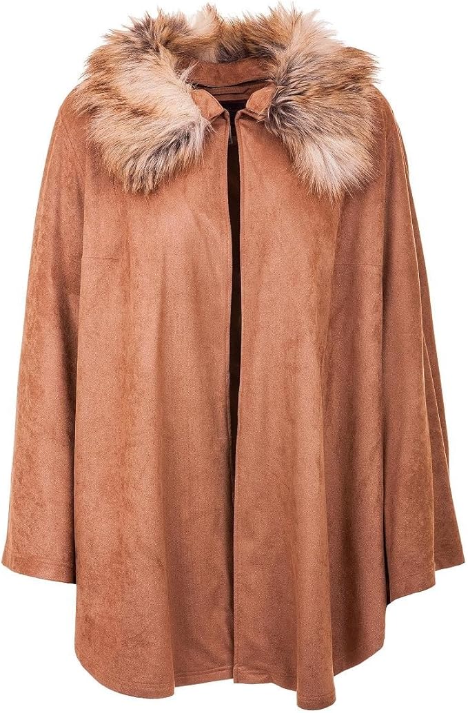 Sempre Piu Cape By Chalou Damen Poncho Mit Fellkragen Uberwurf Grosse Grossen Ubergrosse Amazon De Bekleidung