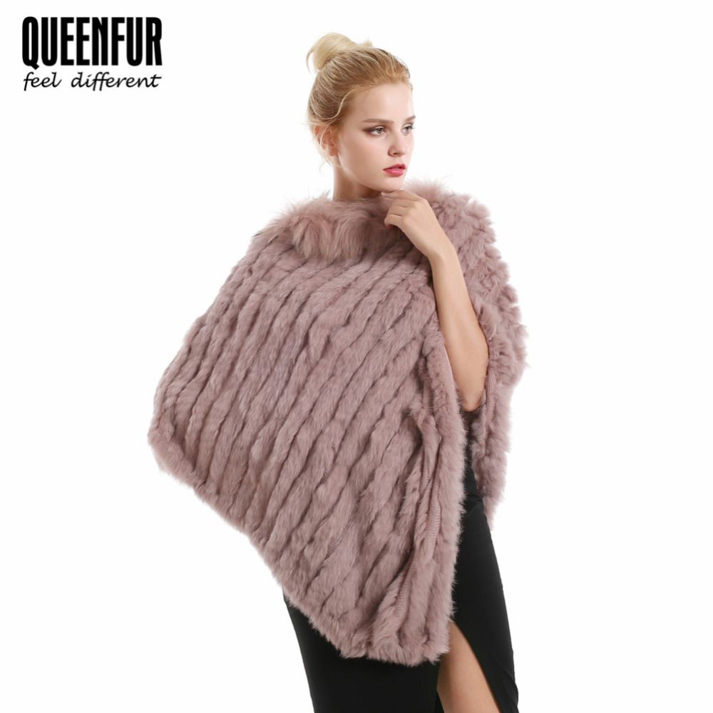 Grosshandel Queennfur Frauen Stricken Kaninchenfell Poncho Mit Echten Waschbaren Pelzkragen Naturliche Pelz Schals Winter Warm Cape Von Art07 35 36 Auf De Dhgate Com Dhgate