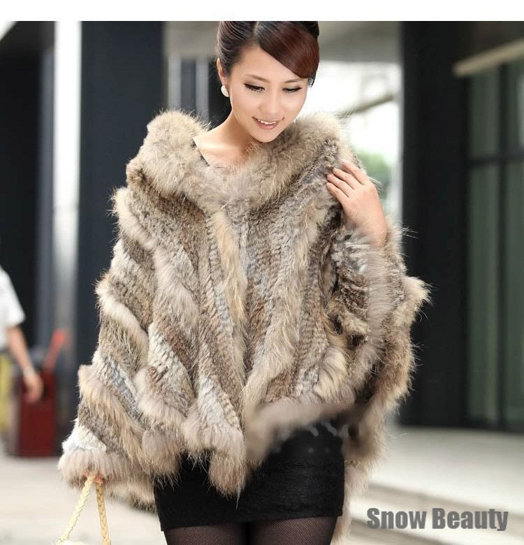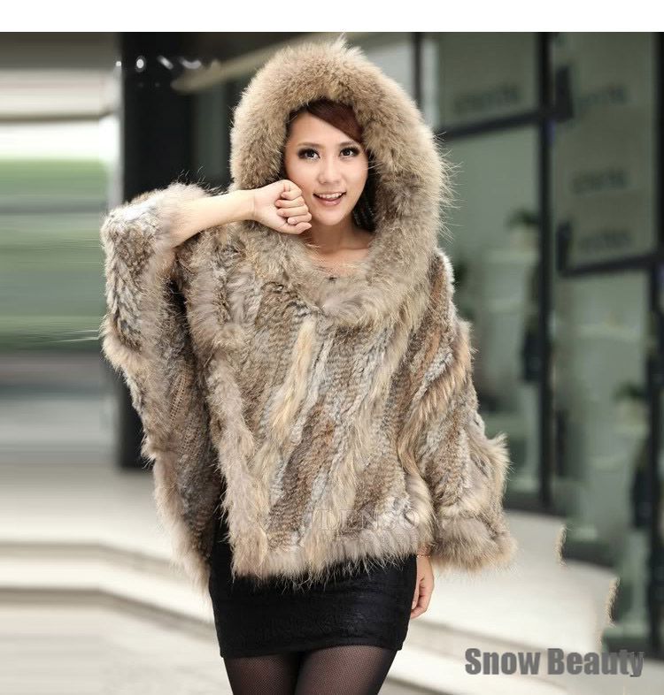 Grosshandel Modische Echte Echte Frauen Gestrickte Kaninchen Pelz Poncho Mit Kapuze Waschbarpelz Kragen Cape Wrap Schal Stola Weibliches Fell Von Art07 230 06 Auf De Dhgate Com Dhgate