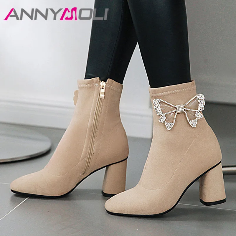 Annymoli Frauen Stiefel Winter Stiefeletten Kristall Starke Absatz Kurze Stiefel Bogen Zipper Karree Schuhe Damen Herbst Rot Grosse 46 Knochel Boots Aliexpress