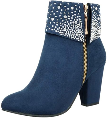 Riou Damen Strass Mit Hohem Absatz Stiefeletten Runde Kappe Reissverschluss Herbst Winter Elegant Freizeit Ankle Arbeits Stiefel Winterstiefel Damenschuhe Amazon De Schuhe Handtaschen