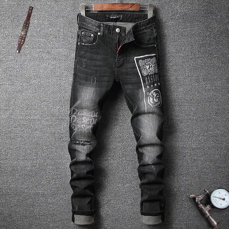 Mode Streetwear Manner Jeans Hohe Qualitat Gedruckt Designer Schwarz Zerrissene Jeans Manner Elastische Punk Hosen Nacht Club Hip Hop Jeans Jeans Aliexpress