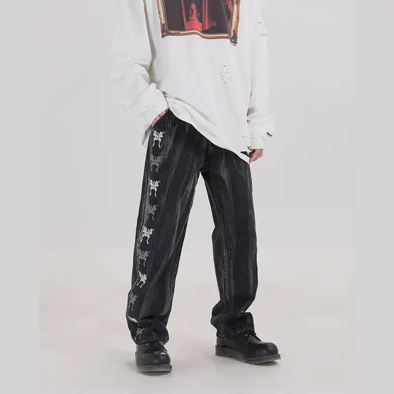 ss Harajuku Retro Tie Dye Schmetterling Stickerei Denim Hosen Manner Und Frauen Gerade Lose Beilaufige Zerrissenen Jeans Hosen Jeans Aliexpress