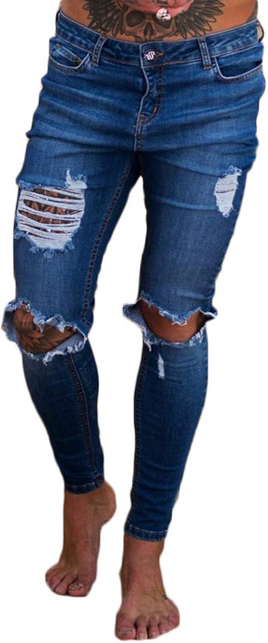 Herrenmode Enzo Herren Skinny Fit Zerrissene Jeans Stretch Distressed Smart Denim Hose Hose Kleidung Accessoires Sticisce Sredisce Si