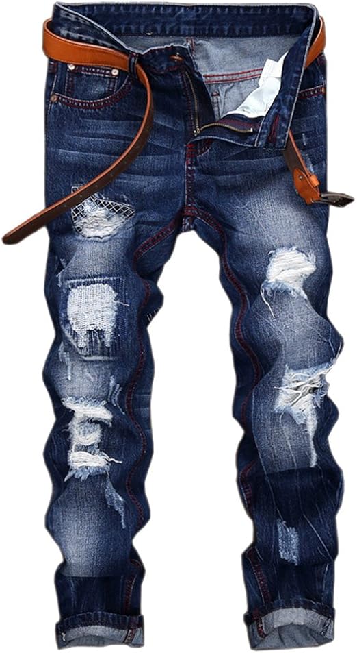 Youcai Herren Lassige Jeans Hose Zerrissene Jeans Regular Fit Low Taille Distressed Denim Pants Rohrenjeans Kein Gurtel Amazon De Bekleidung