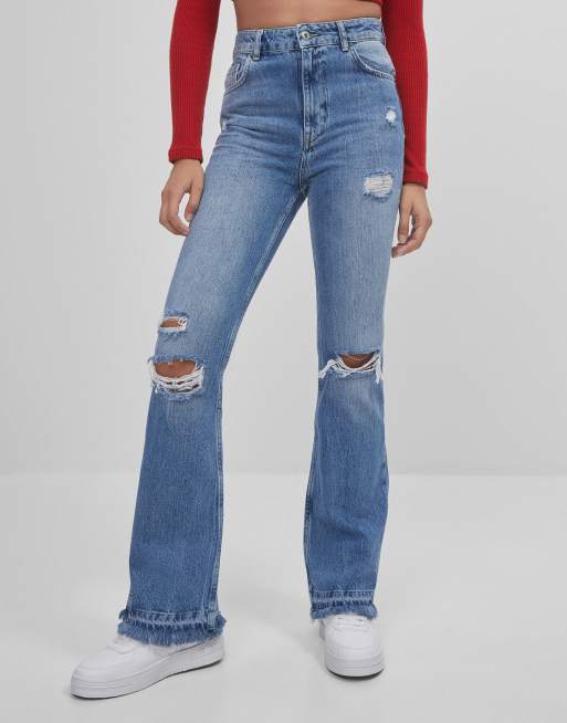 Bershka Ausgestellte Jeans In Blau Mit Zierrissen Evesham Nj