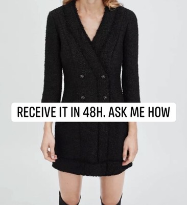 Zara New Tweed Blazer Dress Black Sizes Xs S M L Xl Xxl Ref 8196 054 Ebay