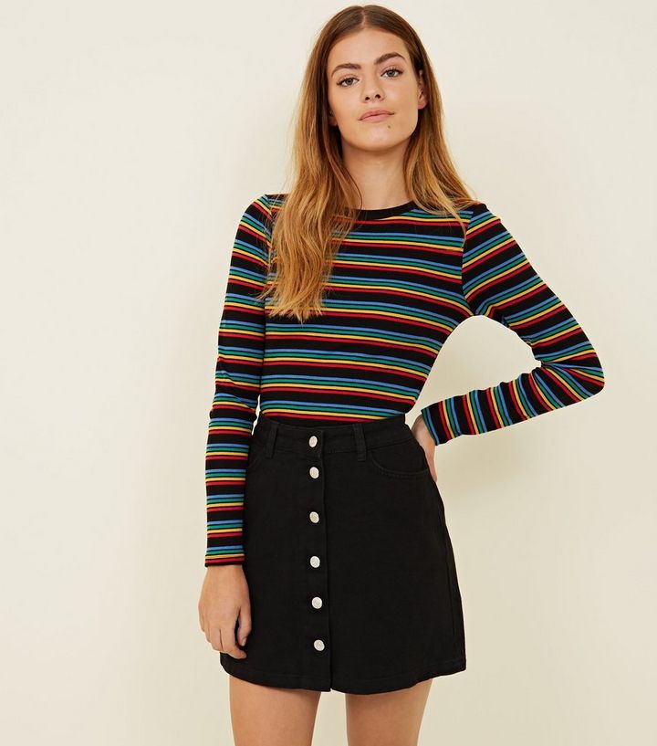 Petite Geripptes Und Gestreiftes Top In Regenbogen Optik New Look