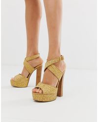 Asos Translate Heeled Sandals In Khaki In Green Lyst