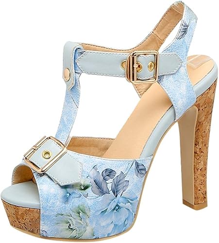 Damen Kork T Schnalle Plateau Stiletto Sandalen Blockabsatz Peeptoe Ebay