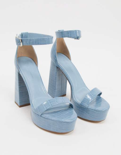 Asos Design Noon Blaue Plateau Sandalen Mit Blockabsatz Asos