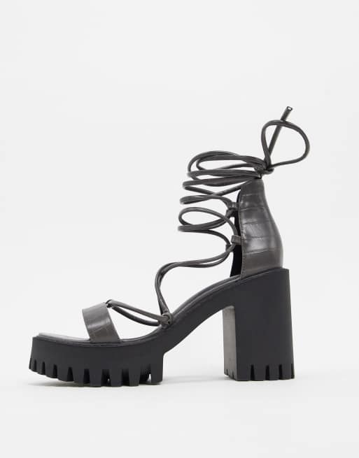 Public Desire Roxanne Graue Plateau Sandalen Mit Knochelschnurung Blockabsatz Und Profilsohle Asos