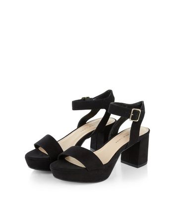 Teens Black Platform Block Heel Sandals New Look