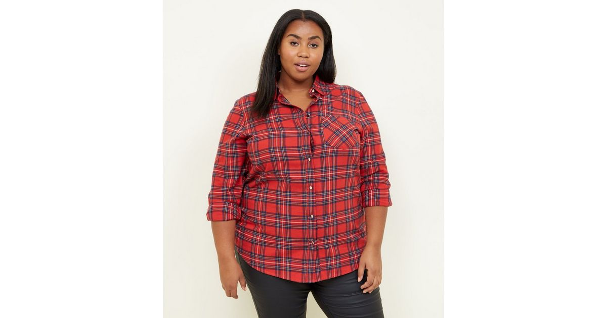 Curves Rotes Hemd Mit Schottenkaros New Look