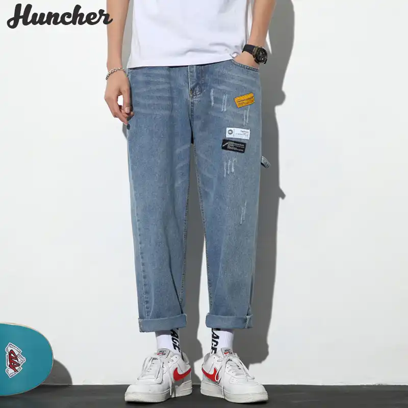 Huncher Herren Jeans Manner Hip Hop Mode Koreanische Streetwear Denim Knochel Lange Breite Bein Hosen Patchwork Baggy Jeans Fur Manner Jeans Aliexpress