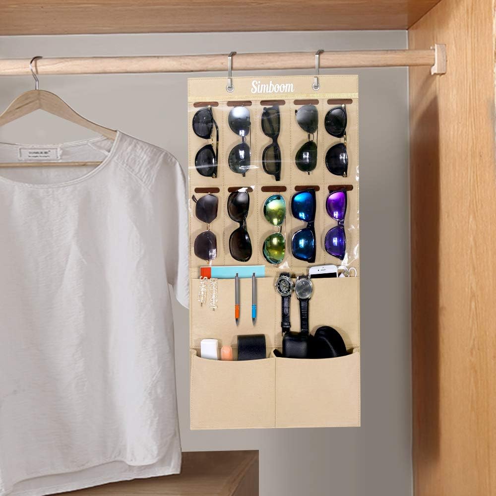 Abnehmbare Beige Slots Abnehmbare Filz Sonnenbrillen Hange Organizer Staubdichter Brillen Aufbewahrung Brille Display Organizer Simboom Wandmontierte Sonnenbrille Organizer Kleideraufbewahrung Organisation Kuche Haushalt Wohnen