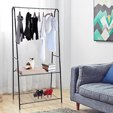 Multifunktionsgerat 2 Nivel Metall Tablett Aufbewahrung Von Kleidung Fur Schlafzimmer Bucherregal Organizer Fur Jacken Hemden Regenschirm Hute Schuhe Schwarz Amazon De Kuche Haushalt
