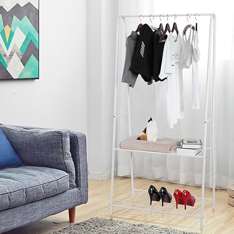 Multifunktionsgerat 2 Nivel Metall Tablett Aufbewahrung Von Kleidung Fur Schlafzimmer Bucherregal Organizer Fur Jacken Hemden Regenschirm Hute Schuhe Weiss Amazon De Kuche Haushalt