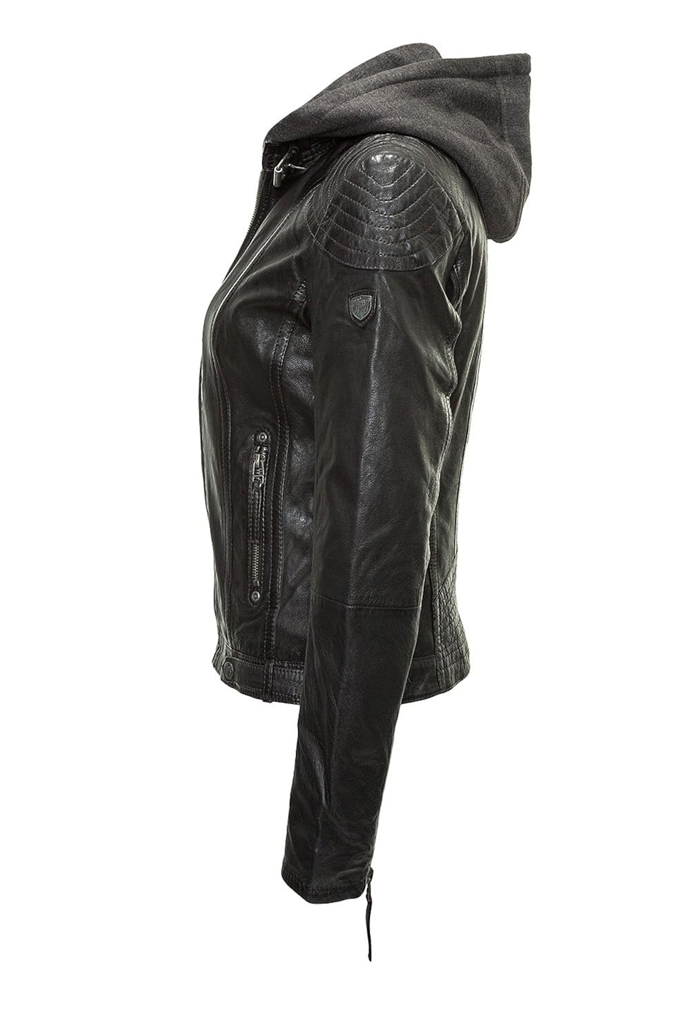 Gipsy Damen Lederjacke Mit Kapuze Im Biker Look Schwarz Amazon De Bekleidung