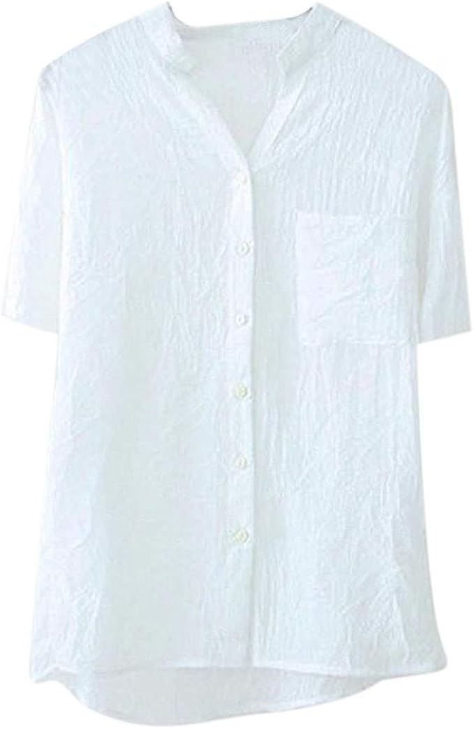 Kanpola Casual Sommerblusen Damen Loose Kurzarm Einfarbig Hemd Stehkragen Tunika Amazon De Bekleidung