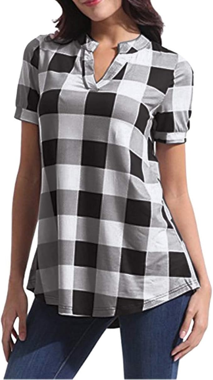 Xuxmim Damen V Ausschnitt Kariert Bluse Kurzarm Hemd Tops T Shirt Weiss Large Amazon De Bekleidung